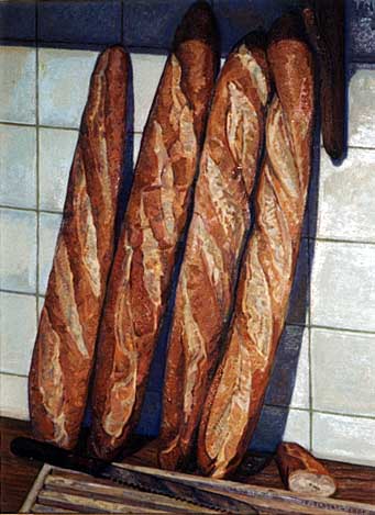 sill life oil painting "Four Baguettes." Private collection: